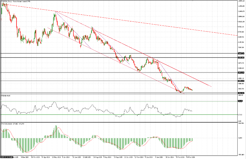 The key reference level remains the recent low at $2,822 per ton, which may serve as a base for strategy development. It represents a potential entry point—both for long and short positions—and allows for relatively tight stop-loss placement.