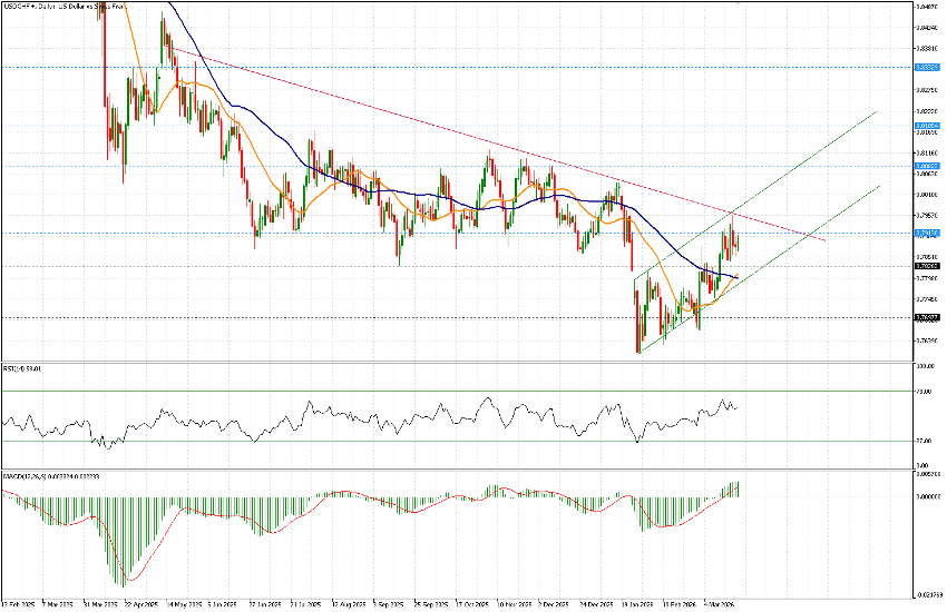 Dicho esto, el USD/CHF está subiendo dentro de un canal bien definido. Cotiza por encima de las medias móviles de 21 y 50 días, que recientemente han cruzado al alza. El RSI es positivo en 58,33 y el MACD también se encuentra en territorio positivo.
