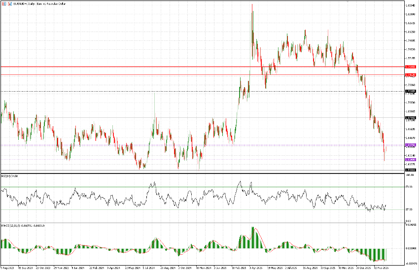 The area where the cross currently trades is quite congested on a longer-term basis. EURAUD traded between 1.5990 and 1.6770 from March 2023 until February 2025. Within this range, the most relevant levels for swings are 1.6150 and 1.6375.