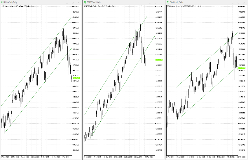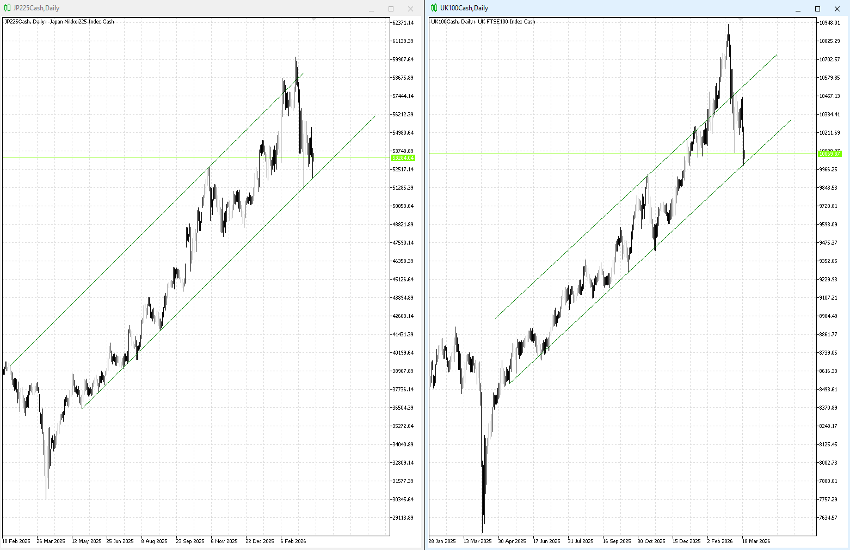 Finally, there are the “exceptions”: the UK100 and JP225, which despite the selling pressure are still trading within their long-term upward channel, currently near its lower boundary.