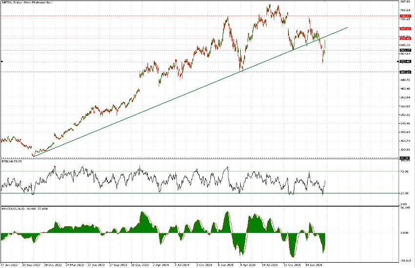 On a shorter time frame, and in trying to define a clearer target for this newly initiated upward move, the outlook becomes slightly more constructive: the downtrend line from January appears to have been broken (a fairly bullish signal), and in the event of a clear move above the $635–$643 range, there could be further upside, likely toward the previously mentioned $680 resistance. At that point, the price would be approaching a more significant and less steep long-term downtrend line, warranting a reassessment. That said, much will depend on broader market performance and investor risk appetite in the coming weeks, given the evolving global backdrop.