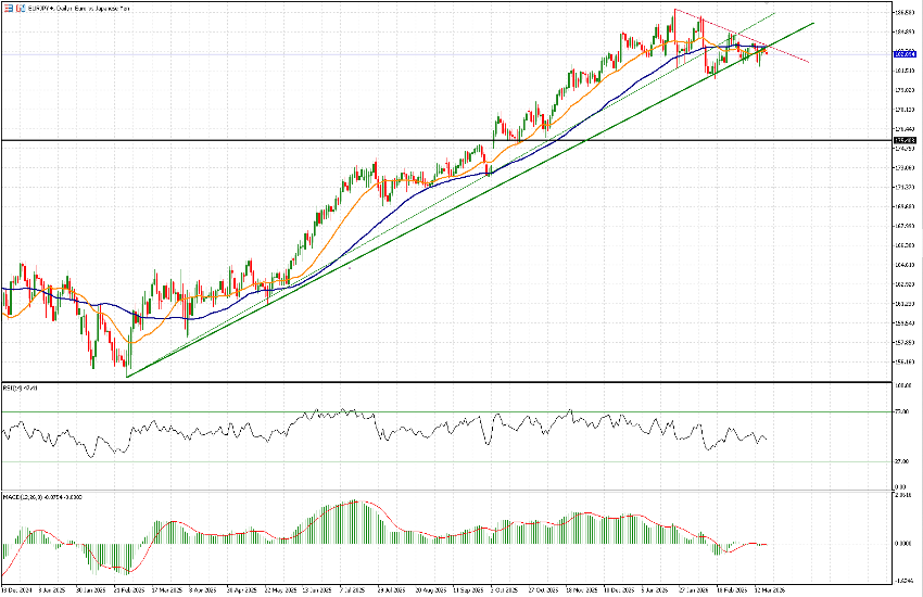 Tecnicamente, o EURJPY apresenta um cenário interessante. Diferentemente do USDJPY, ainda se mantém bem acima dos máximos de 2024 (em torno de 175,40). No entanto, também está em fase de consolidação, refletindo a força do dólar e a fraqueza do euro.