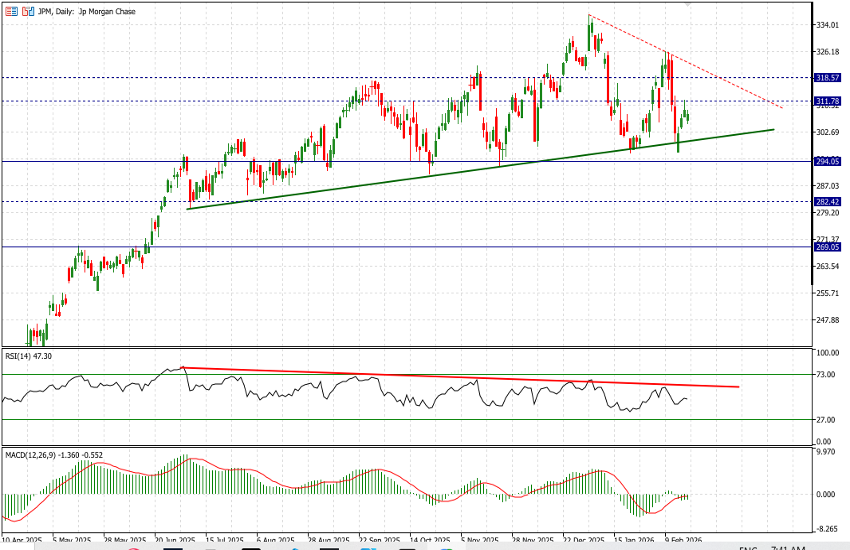 No lado positivo, dois níveis técnicos relevantes se destacam em US$ 312 e US$ 318,5, atuando como resistência antes do início de uma linha de tendência de baixa, atualmente posicionada em torno de US$ 322.