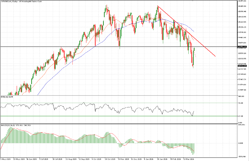 Just last week, the US100 finally broke below the 23,950 support level, which had served as a solid floor since the beginning of the sideways phase in September 2025—an unequivocally bearish signal. Constrained beneath a clearly defined downtrend and with declining moving averages, opportunistic buyers began to re-emerge around 22,900, a secondary support level. With the market in oversold territory, many participants were positioning for a rebound—though its sustainability remains uncertain.