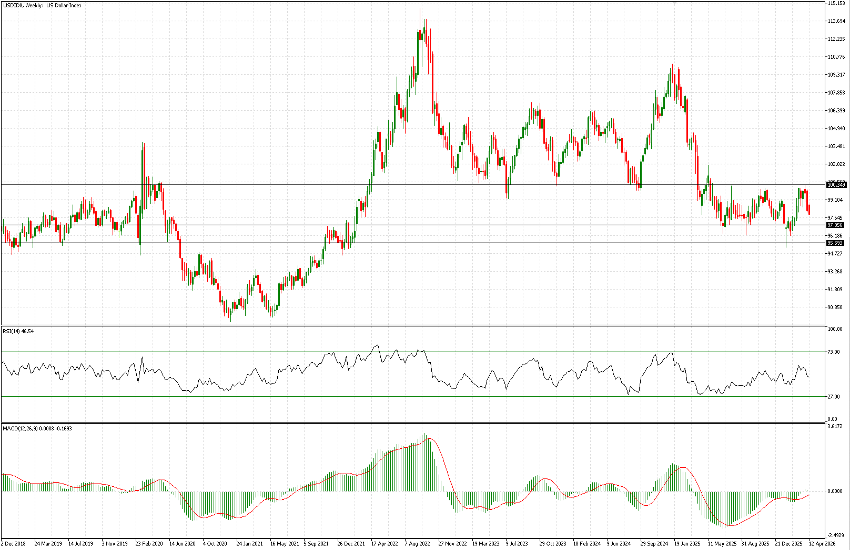 From a technical perspective, the base case suggests continued downside in the medium term, with a potential test of 97.05. A temporary consolidation or rebound at current levels remains possible. Over a broader horizon, the prevailing scenario remains a continuation of the longer-term range, with a potential extension toward 96.30 in the coming weeks.